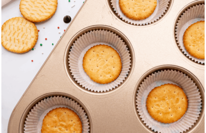 - Place a Ritz cracker in the bottom of each muffin cup.
