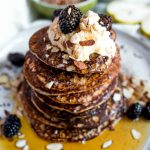 These wholesome blender pancakes are hearty, cozy, and naturally sweetened with pear. Made with farro, oats, almonds, and chia seeds, they blend up quickly for an easy, nourishing breakfast or brunch. Makes 10-12 pancakes.